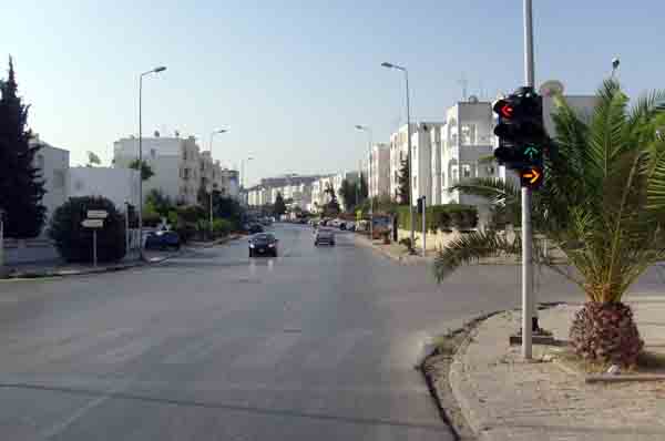 On peut trouver des feux tricolores qui réglementent le passage aux intersections,